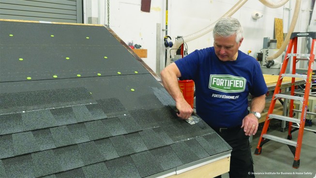 When following the IBHS Fortified prescription, roofers waterproof the roof deck so that even if shingles are lost, the sheathing will stay on the roof and the underlayment and sealed roof deck will protect the home from water intrusion. Repairs after a storm can be limited to shingle replacement, instead of also entailing extensive, and expensive, work inside the attic and the living space below the roof.
