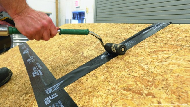 Alternatively, you can seal the sheathing seams using peel-and-stick tape.