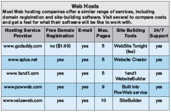One consideration is your computer savvy. Do you have design skills? Do you know HTML? If you don’t, you can use the simplified site-building tools that most hosting providers offer. It’s worth the time to check out several. Most providers offer a similar set of services, but all have variations, and some charge for certain tools.
