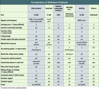 Each of the programs we tested — Chief Architect, DeckTools, Realtime Landscaping Architect, SketchUp, SoftPlan, and VizTerra — has good points.