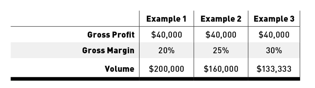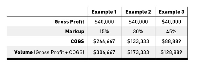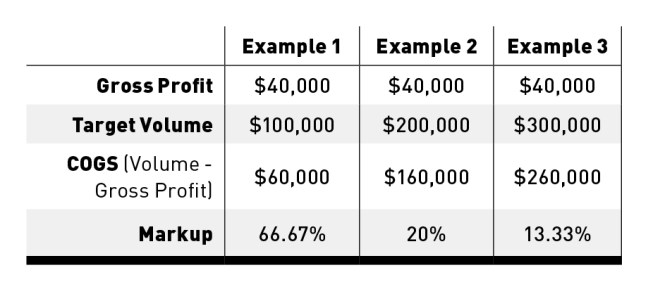 Taking these same realistic volume figures, you can calculate the markup you need to apply. Then, using the markups, you can price your jobs accordingly, secure in knowing that you will actually make a sustainable profit, provided you hit your sales volume target.