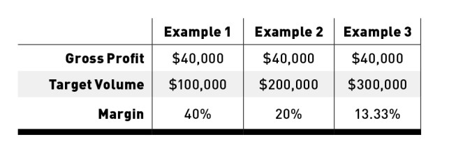 If you know your gross profit and you experiment with various margins, you can see the theoretical sales volume required to meet your overhead and target profit.