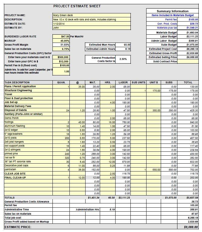 I’ll even offer you a free copy of my recently updated Excel Estimating Spreadsheet Template.