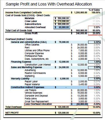 In recent years I’ve spent a lot of time speaking to and consulting with builders and remodelers, big and small, and I’ve noted that there’s often confusion about what types of costs go where on a financial statement. On a typical P&L (profit and loss statement), the costs are segregated into two types: cost of goods sold (COGS) and overhead. COGS consists of the costs directly related to producing jobs. Accountants call these “above the line” costs. Overhead items, or indirect costs, go “below the line.” The “line” that differentiates these costs is the gross profit. To arrive at the gross profit, above-the-line job costs are subtracted from job income or selling price. To get net profit, overhead costs — below-the-line costs — are subtracted from the gross profit.