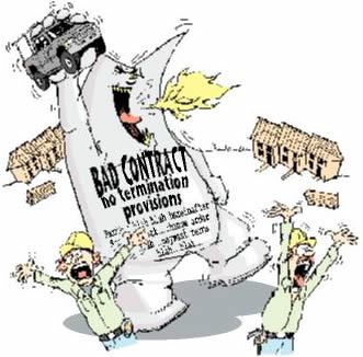 Whether it’s due to a difficult homeowner, a major illness, or a customer’s sudden job loss, most contractors will have to terminate a contract at some point in their careers. If a contractor doesn’t plan for this in advance, he will almost certainly lose his anticipated profit and may not be paid for the work that’s already done. He is likely to face expensive legal fees and the possibility of an adverse judgment in court. The best way to avoid these negative outcomes is to use a good contract and get advice from a competent lawyer.