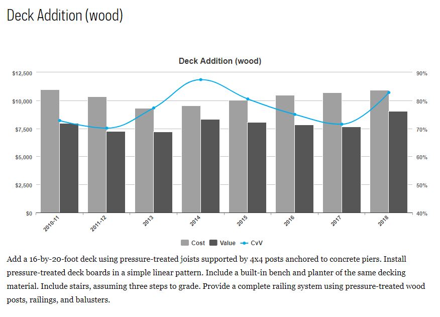 While patios and composite deck projects didn’t offer as much bang for the buck compared to last year, pressure-treated decks continue to provide a solid return on home improvement dollars, according to Remodeling magazine’s latest Cost vs. Value report. Overall, there was a slight decrease nationally in in the average payback of the 20 benchmark projects that the report tracked in 2017, which the authors attributed to across-the-board cost increases in materials and labor.