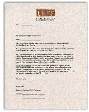 The letter states that the work I do for them during the design phase is free as long as they sign a construction contract with us within six months.