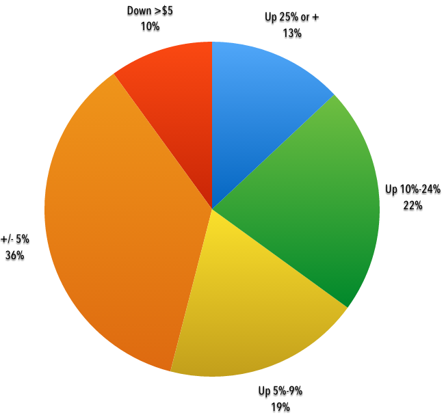 And here are the projected changes in company revenue in 2016 for the 231 firms taking part in this section of the Farnsworth Group survey: