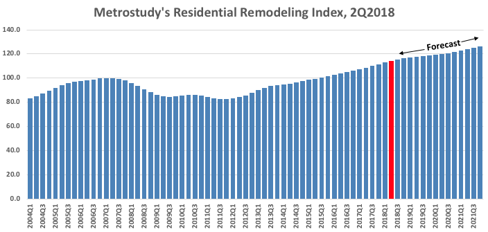 “The U.S. economy is in the midst of its longest streak of consecutive monthly job growth in history, and, the median existing home price has recorded seventy-six consecutive months of year-over-year gains,” said Mark Boud, Chief Economist at Metrostudy. “With record setting levels in employment growth and home equity, it is little wonder that Americans are investing in home upgrades. We expect the remodeling industry to close strong in 2018, with more moderate, but still-steady growth in 2019.”