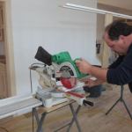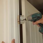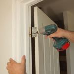 In the second set, the zoomed in shot is all about the screw being used in the hinge. The middle shot shows the whole drill-driver so it becomes more about the action of driving the screw. The zoomed back shot captures just the side of the carpenter’s face, which adds a human element to the shot while still being about the action of driving the screw.