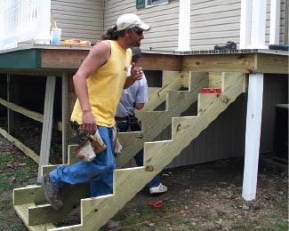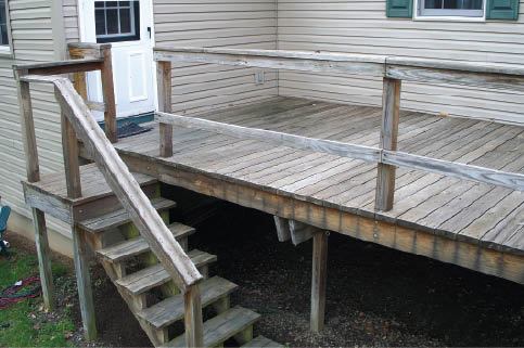 Figure 8. Old stairs are often in rough shape, don’t meet current codes, or aren’t configured to accept modern synthetic decking. Replacing them is a common part of a deck remodel.