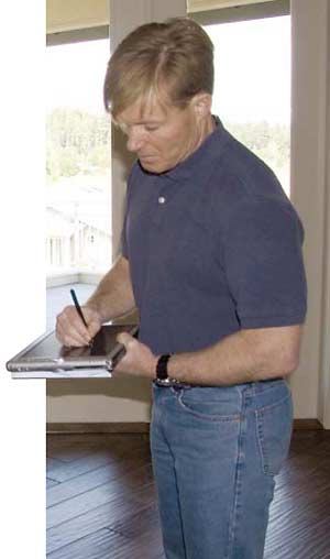 I kept a notebook computer in the truck, but it wasn’t good for much beyond looking things up online and typing the occasional e-mail. What I really needed was something I could take with me when I walked through a house. I had tried handheld voice recorders and PDAs, but both fell far short of my needs. There seemed to be no way to free myself from the yellow pads.
