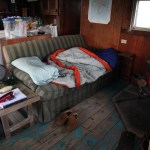 Settling in. We unpacked our food and unrolled our sleeping bags on the two twin beds. (Chip mentioned that if it got cool and windy, the overstuffed sofa in the living room in front of the wood stove might be a better place to sleep). After opening a bottle of red wine for my birthday, we sat on the deck long enough to take a deep breath and relax in the warm late summer sun.