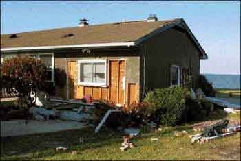 The surge from Hurricane Isabel (bottom) in contractor Robert Criner’s hometown of Yorktown, Va., was powerful enough to strip this home (top) of its brick veneer.