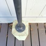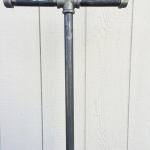 First, I cut about 1 inch off the post’s edges at 45 degrees and applied waterproofer/preservative to all the cuts. The bevels prevent sharp corners from catching the sides of the hole, allowing the post to do a better job of tamping the dirt around the hole’s bottom circumference. Then I centered a floor flange fitting on one end of the 6×6 and screwed it on with 2 1/2-inch #12 stainless screws. I fastened a 36-inch length of straight pipe to the flange and added a T-fitting to the other end. A pair of 6-inch-long pipes with end fittings completed the handles.
