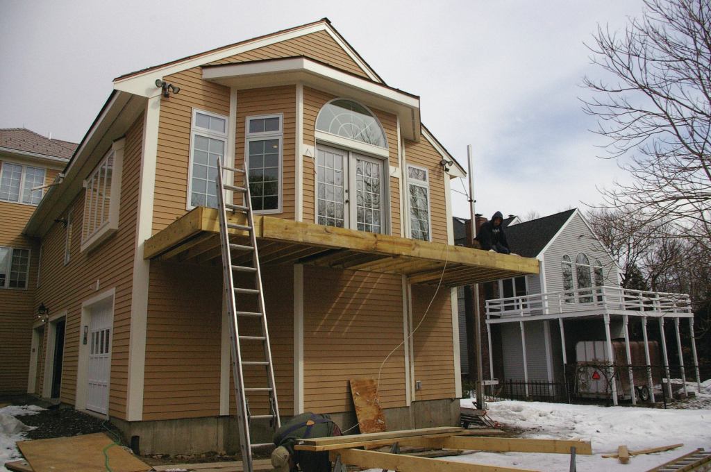Cantilevered wood framing can be reinforced with steel, an approach used by Lenny Gillis, of Colony Home Improvements, while building a cantilevered balcony as part of an extensive remodel in Wellesley, Mass. While the project’s architect had initially specified pressure-treated 2x12s as the cantilever support, Gillis thought that was a bad idea. “The 2x12s were supposed to be sistered to the interior engineered I-joists, but in my experience, PT tends to twist when it’s used inside a structure,” Gillis explains. “In addition, we couldn’t get the lengths we needed to satisfy the required amount of cantilever.”