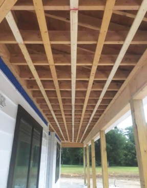 Stretching 80 feet across the front of the Maryland home that my company was building, this front porch was one of the home’s major design elements and would be highly visible from the road. As the general contractor, I knew the home inside and out. It was designed as an all-white, modern version of a farmhouse, with black doors and window frames. During construction, the owner and I agreed that a dark ceiling for the porch would help soften the contrast between the bright white exterior and the black accents.