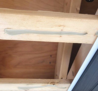 At the diagonals where the porch turned a corner, backing was needed for the T-shaped molding that would be used to cover the intersection.