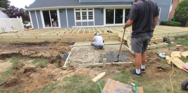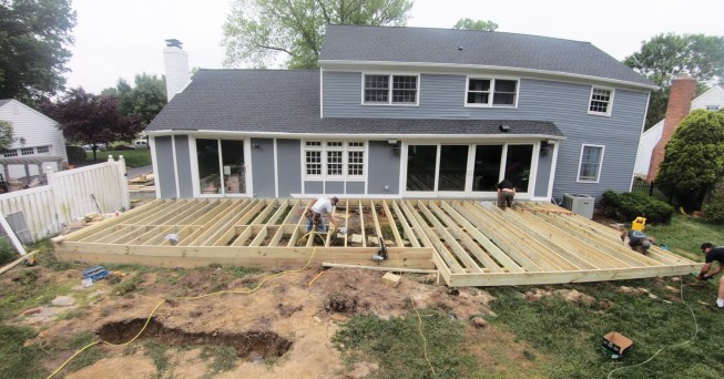 Most of the deck was conventionally framed with pressure-treated lumber.