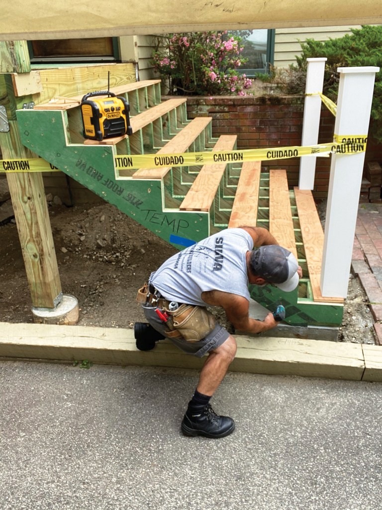 To satisfy the zoning permit, the new porch and stairs had to fit the existing footprint.