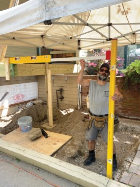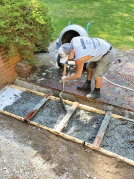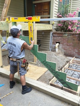 The author used the new porch – which he had framed on temporary supports – as the benchmark for determining the landing slab’s location and elevation.