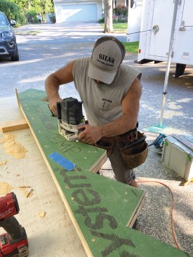 The author used the template that he had made to fabricate the stringers to pattern-rout the PVC stringer trim.
