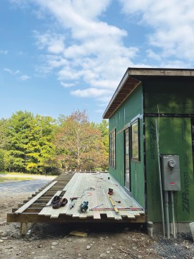 The excavation contractor already had equipment on site, so he dug a long trench and we worked with him to lay out and place the piers exactly where we wanted them. Because of the bedrock at the house site, some of the piers needed to be trimmed with a gas-powered cutoff saw so they wouldn’t sit too high above grade.