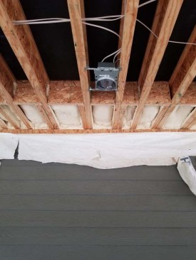 The joist bays underneath the cantilever were refilled with spray foam insulation.
