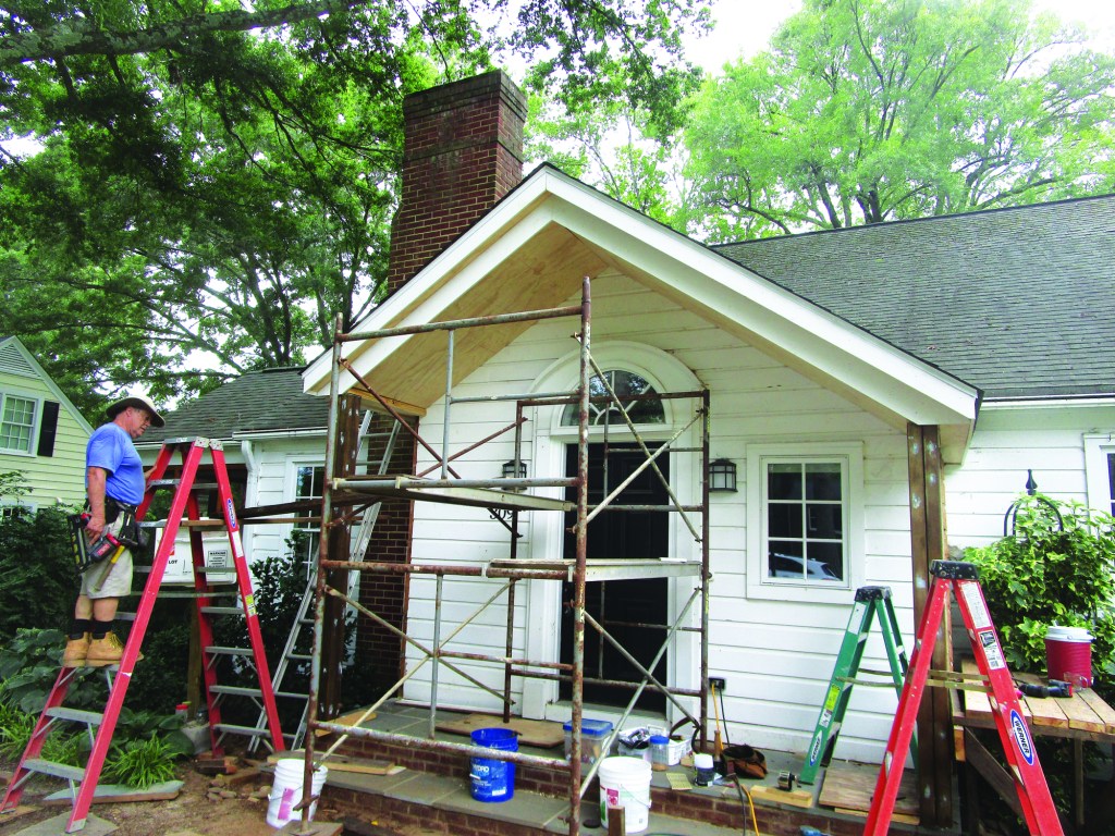 The completed portico was painted to match the house.