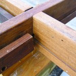 We build the grids from 5/4 ipe. Tough and weatherproof, ipe is the best choice for outdoors. The crosspieces of the grids are half-lapped. When the decking is also 5/4 ipe, I typically space the half-laps 2 feet apart, a distance 5/4 ipe spans well. The joinery of the grid is milled to a close tolerance, for fit and appearance. My crews preassemble as much as possible in the shop.