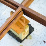 Ledger strips of ipe joined to the grid members support the panels (Figure 3). We adjust these strips to the appropriate height depending on the panel thickness, and we space them away from the grid members by about 1⁄2 inch to provide for drainage and to keep the end grain of the decking from sitting in water.