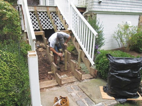 After removing their treads and risers, I discovered that the key element missing from both sets of stairs was adequate support at ground level.