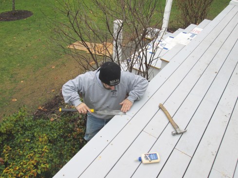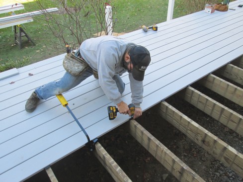 The only hiccup that I encountered with the decking was trying to color-match the cut ends and plugs to the decking. The manufacturer-supplied touch-up coating was supposed to be opaque, but it applied like a translucent stain, even after vigorous mixing and multiple coats.
