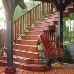 The stairs have vertically-oriented risers. As I did with every component in the rest of the deck, I eased their edges with a 3/8-inch-diameter roundover bit mounted in a router, sanded them to 180-grit, then coated them on all sides—especially the end grain—with Sikkens Cetol marine wood finish prior to assembly. Afterward, I filled all the screw holes with wood plugs, touched up any scratches and dings, then brushed on two additional coats of Cetol over the entire deck.
