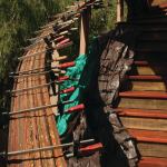 Glue-up is a messy and fast-paced process, and takes as many clamps and helpers as you can muster. We coated the strips of redwood with Titebond 3, a waterproof wood glue that has a reasonably long working time, then worked furiously to clamp the glued-up handrail to the Bender Board in order to form the radius. I allowed the glue to cure for about 10 days, then removed the clamps and set the rail on sawhorses, where I cleaned it up and smoothed it out with my various belt sanders.