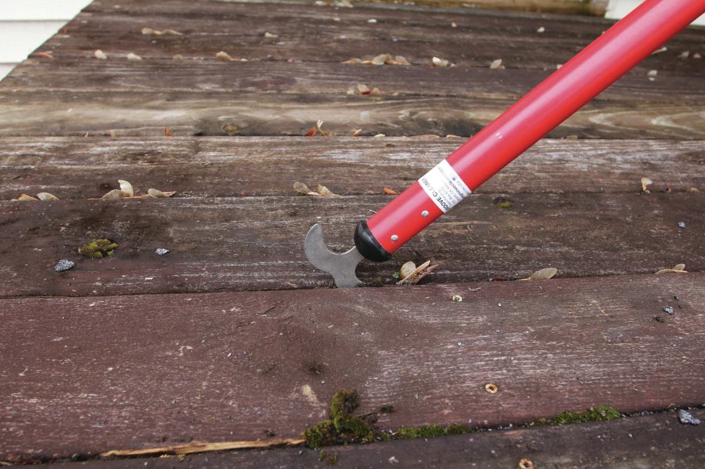 To properly maintain wood decking and prevent rot, the leaves, moss, dirt, and other moisture-collecting debris that accumulates in the gaps between the boards must be periodically removed. If you only need to do this once or twice a year, you’re probably OK with getting down on your hands and knees with a putty knife or old Sawzall blade and digging it out, or setting up a pressure washer. But California deck-builder Richard Houghton—who has cleaned thousands of decks over his 14-year career—decided that there had to be a better way and developed what he calls the Deck Groove Cleaner.
