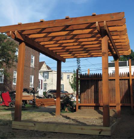 Plus, they’re profitable. Since pergolas are luxury items, the budget to build one is usually large enough that I can use nice materials and take extra time, as I did even on the fairly modest project I describe here (see photo, right). I was able to carefully prepare the site — providing drainage and a buried electrical line as well as a level pad — build a template, and use custom-finished rough-sawn cedar.