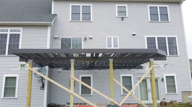 To keep the area below the deck dry, workers installed a Trex RainEscape under-deck drainage system.