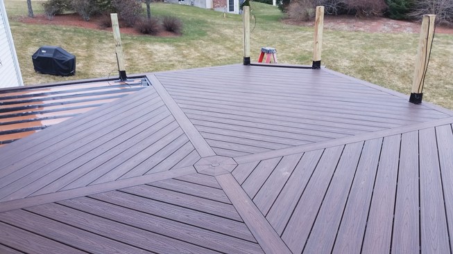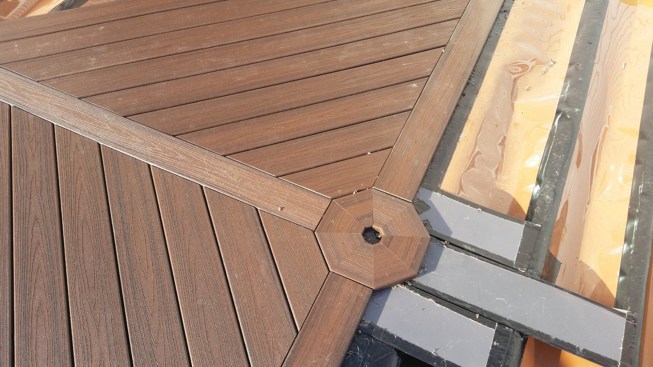 After the drainage system passed water-testing, Trex decking was installed using hidden fasteners.