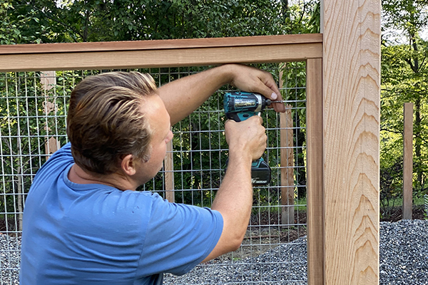 Finishing up a recent remodeling project, my company, New Dimension Construction, was tasked with installing custom-built cedar fencing around the home’s newly installed in-ground pool and garden area. The homeowners preferred to use wood instead of more durable materials for aesthetic reasons and chose a fence design made from western red cedar and heavy-gauge galvanized wire mesh.