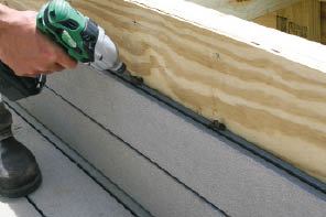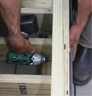 Figure 7. The lowest piece of the composite-decking facing is affixed to the planter from inside with screws (left). Subsequent pieces are attached with hidden fasteners (above).