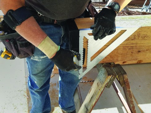 When the post’s base is exposed, we use a square to clean up the tape so it’s even and looks good (see photo, above). After trimming the tape to fit, we go over the seams again to make sure they are all tightly sealed.