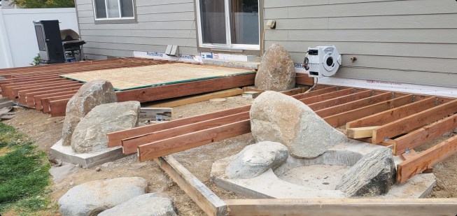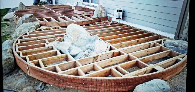 The framing for the new deck was built around these hardscape features and supported by new footings.