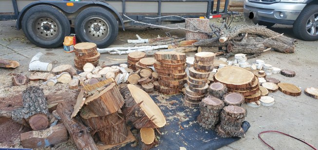 Russian olive is beautiful in cross section, brown in the center and retaining a vibrant golden edge before the darker outer bark. After harvest, I brought the wood home to begin sectioning the tree into 2 1/2-inch cross sections, but I had no plan on where to find the rest of the wood I would need. When I checked with local tree-removal companies and the city tree-limb collection facility, all they had was cottonwood, a soft wood that wouldn’t qualify for the project.