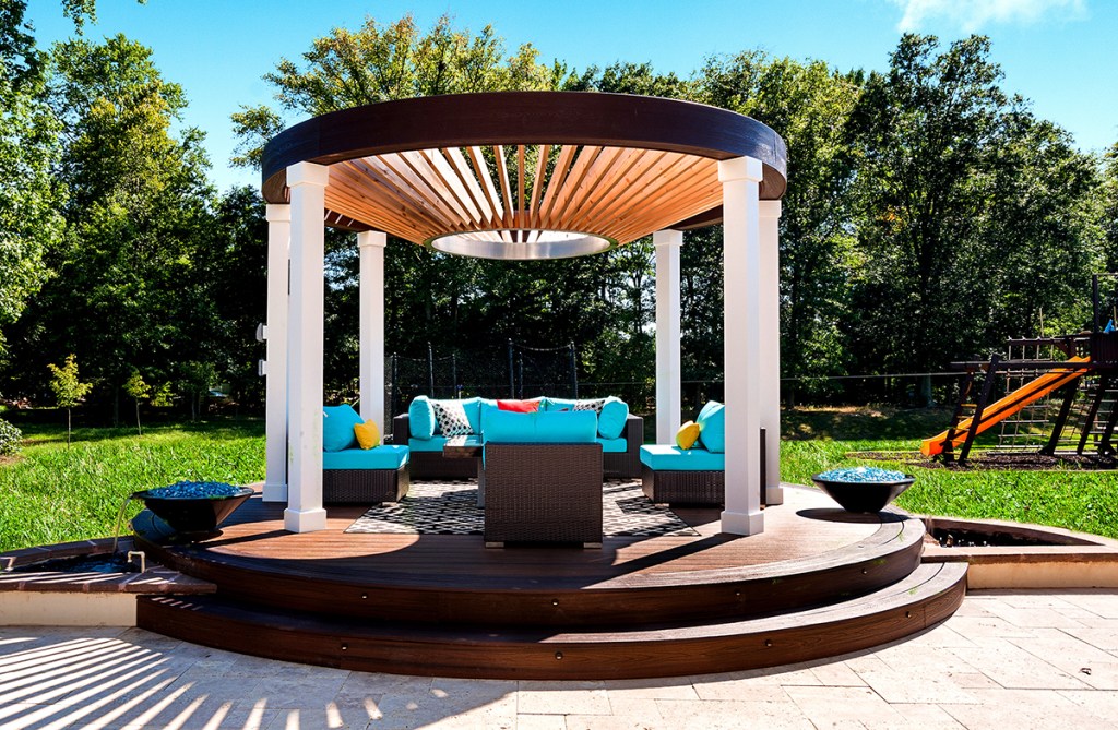 Best friends from elementary school, Keith Fry and Bill Wilson morphed a door and window company, which they had established shortly after graduating from college, into Amazing Decks in 1999. Now they build more than 100 deck projects a year, including this unique circular pergola that’s part of an extensive backyard living project completed in 2016 in Mount Laurel, N.J. Fry says that his design was inspired by a Paul LaFrance–designed circular pergola that the homeowners had seen and admired.