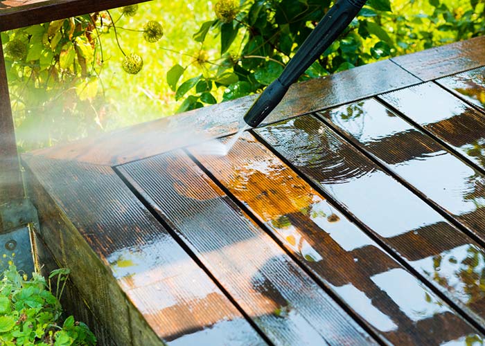 Cleaning a pressure-treated deck should be an annual affair, and if you also have to refresh or even totally restore the finish (see Restoring a Wood Deck), is an important first step. Cleaning a wood deck is simple – just mix a little detergent and a little bleach together in a bucket full of warm water and go at the deck with a scrub brush, right? The problem, though, is that chlorine bleach breaks down lignin, the aromatic biopolymers that make up the cell walls of wood. Bleach also corrodes metal fasteners, and because it is a basic solution, will shift the pH of wood decking away from its natural slightly acidic state.