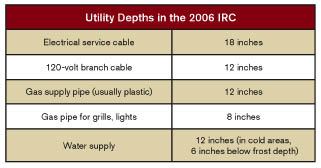 Glenn Mathewson, a building inspector in Westminster, Colo., responds: Yes! In many U.S. locations, winter temperatures require foundation piers for decks and other structures to extend below the frost line, which can be 48 inches or more deep. This well exceeds the minimum depth required for some underground utility cables and pipes. Even in areas with warm winters and no frost depth, the International Residential Code requires footings to be at least 12 inches deep in undisturbed soil. Digging just those 12 inches could cause an unpleasant and unplanned encounter with the site utilities.