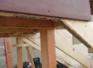 Next, Simpson’s CS-16 is not designed for anything like the application shown in the article “Quick and Sturdy Stair Attachment” (November 2009; free at deckmagazine.com). It is designed to connect two separate wood members along the same axis of force. The fasteners (nails) are at right angles to the force trying to separate them, and the ultimate strength is either the strength of the CS-16 or the combined shear values of all of the nails on one side of the splice. In the example shown in Figure 3 [see photo, below], the strength of the connection would be the withdrawal resistance of the fastener nearest the joint, until it failed, then the next, until they were all pulled loose. Never would you have any more strength than the withdrawal resistance of a single nail.