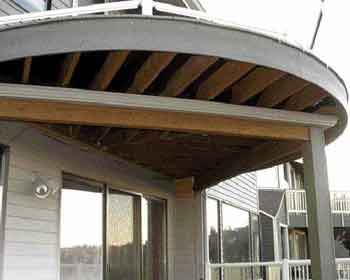 Because the drainage troughs run between the joists and can be made to fit any space, this below-deck drainage system works with any deck, including custom-shaped ones.