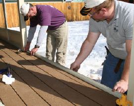 2. Bed the base track in caulk and screw it to the decking. Attach the top track, which is deeper than the bottom one, the same way. Drill weep holes in the base track 3 inches from the ends and 16 inches on-center.